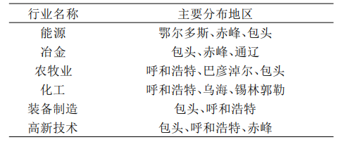 表2 内蒙古产业主要分布地区