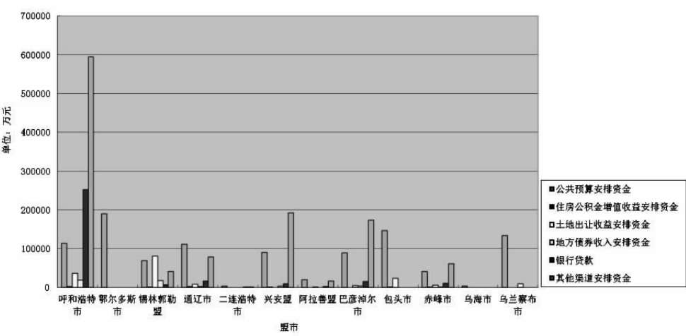 按照市场化运作、多元投资等原则,通过土地划拨、政府贴息、税费减免等政策,吸引社会力量参与建设和经营保障性住房。赤峰市积极探索政府主导下的市场作用有效发挥,破解资金瓶颈,成立了公共住房投资建设有限责任公司,计划将政府拥有的保障性住房和一些土地资产划入该公司打造融资平台。通过市场运营实现投入保障房建设的国有资产保值增值,最终实现保障性住房建设的可持续。呼和浩特、包头和乌海等城市在原城投公司的基础上,搭建保障房融资平台,组建保障房建设公司承担大部分公共租赁住房等保障性住房建设任务。2011年乌海市通过融资平台向国家开发银行申请贷款8亿元,极大缓解了该市建设资金紧张的局面。