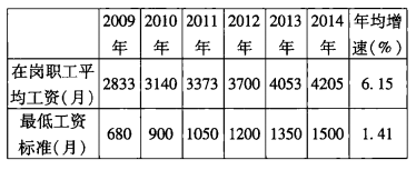 表2呼和浩特市2009~2014年在岗职工月平均工资